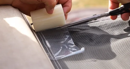Next, measure the dimensions of the torn part and cut a piece of fabric that is slightly bigger. In patching the awning, employ a layer of adhesive to the back of the cloth and press it into place over the tear.